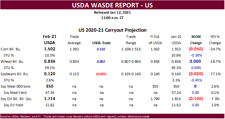 Recall last S&D report CBOT corn traded limit higher. It hit session lows today 20 min post report. February USDA supply and demand report traditionally is a benign report. USDA made US demand adjustments this month to accommodate global trade flows, notably corn, despite no 2020-21 production changes for Argentina and Brazil corn and soybean estimates. Note overnight China left their corn and soybean S&D’s unchanged. But USDA has a differs view on China corn imports as they raised it by 6.5 million tons to a record 24 million tons.