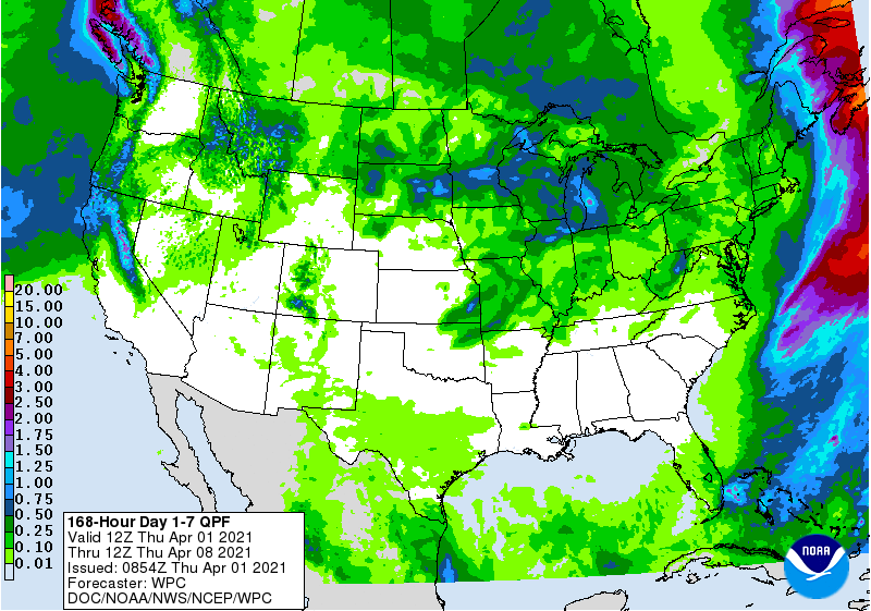 South Africa corn and sorghum is still expected to yield well. India weather during the winter was favorable, although not quite as good as last year. Southeast Asia corn in Thailand is slow getting started, but a boost in rainfall in April should improve the situation. China is expected have a good start to planting and U.S. planting is also expected to go swiftly because of warm temperatures and lighter biased rainfall at times.
