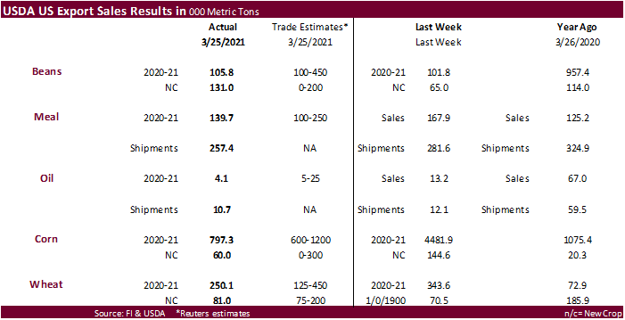 U.S. EXPORT SALES FOR WEEK ENDING 3/25/2021