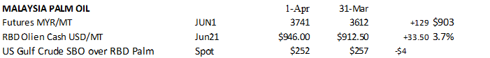 - The USDA seeks 540 tons refined veg oil, under the McGovern-Dole Food for Education export program (470 tons in 4-liter cans and 70 tons in 4-liter plastic bottles/cans) on April 6 for May 1-31 (May 16 – Jun 15 for plants at ports) shipment.