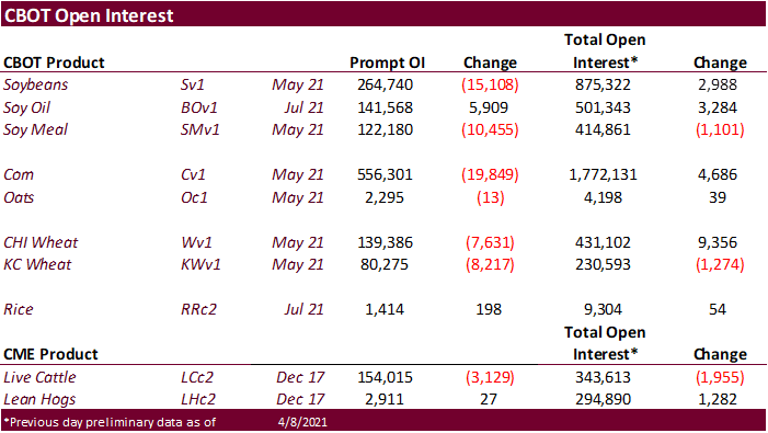 news day with 2 rice import developments and China CASDE indicating corn imports will be near 22 million tons for 2020-21. USD is higher and WTI lower. CBOT ags are mostly higher (Beans mixed & SBO lower on product spreading) from positioning ahead of the