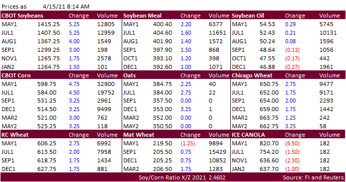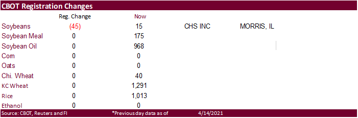 summary is based on reports from exporters for the period April 2-8, 2021.