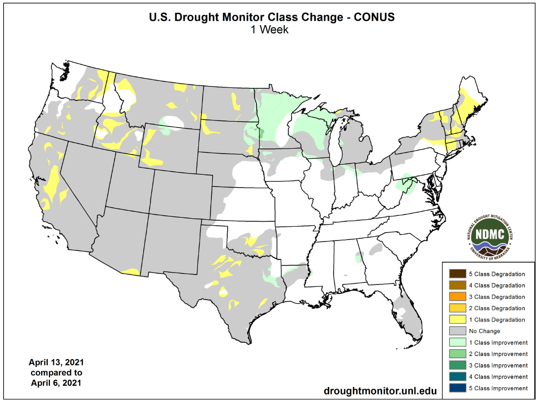 moisture in the upper Midwest and southeastern Canada’s Prairies has improved the planting outlook for late this month and especially in May if there is follow up rain. Temperatures will be cool this week limiting any thought of fieldwork for a while.