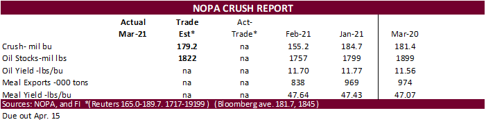 production states across the Midwest is seen threatening developments and germination, respectively. Brazil’s second-crop corn is under stress from dryness. It will be a busier morning than usual with USDA export sales on deck followed by NOPA crush.