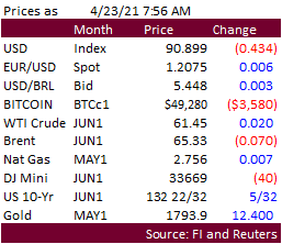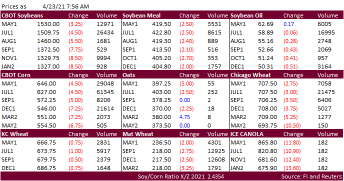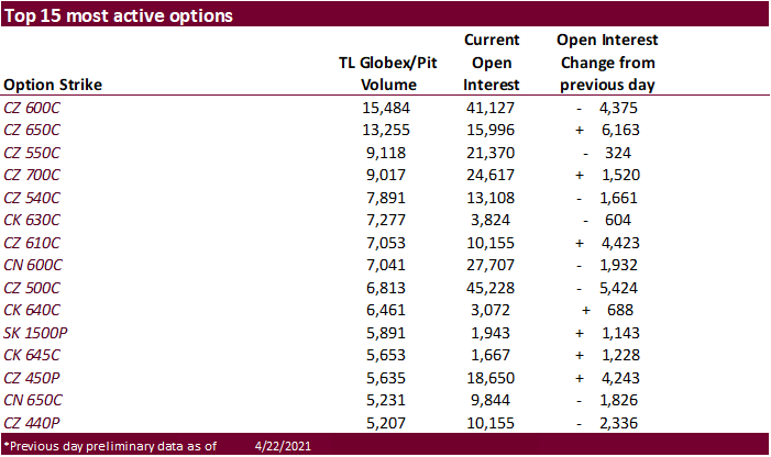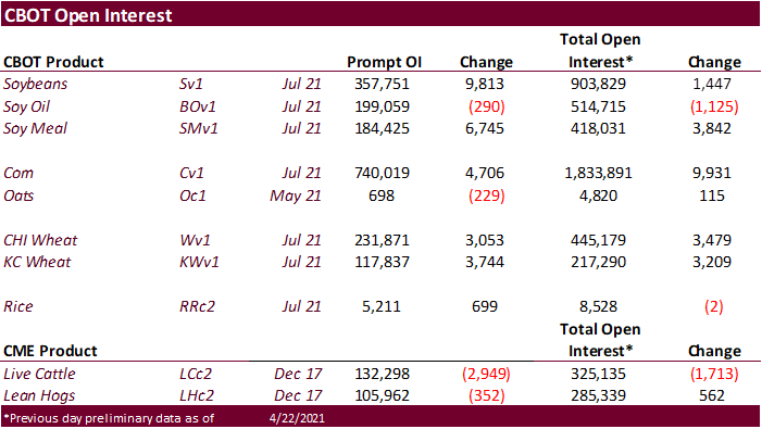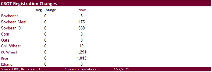 Africa’s Crop Estimates Committee (CEC) will update their 2020-21 corn production on April 29 and a Reuters trade estimate is at 16.349 million tons, up from 15.922 million tons projected in March and above 15.3 million collected last year.