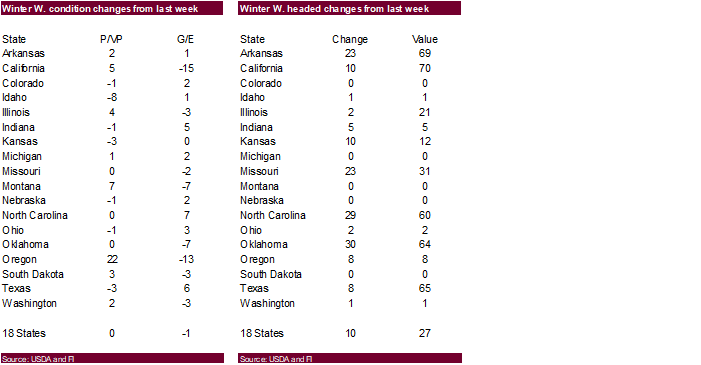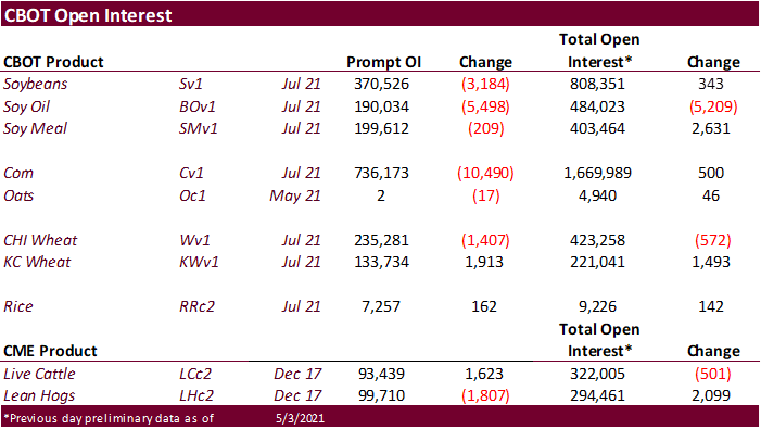 for the soybean products. Malaysian palm fell 19 points and cash was down $2.50/ton. Overnight Tunisia announced an import tender for 50,000 tons of feed barley and SK is in for 134,994 tons of rice.