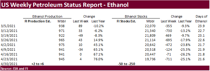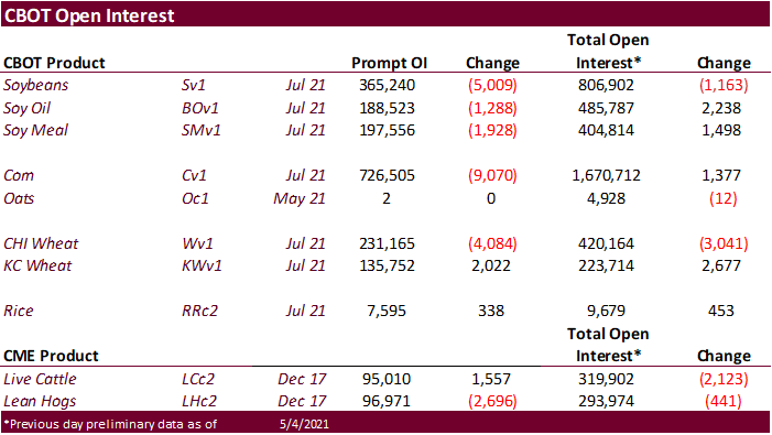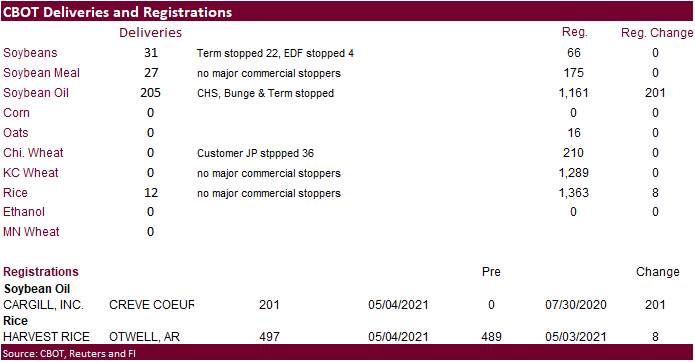 FI Morning Grain Comments 05/05/21 May 5, 2021 PDF attached Good morning. Higher trade on ongoing Brazil weather concerns and sharply higher ICE Canadian canola futures.