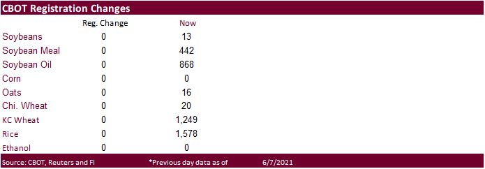 Census trade data attached. CBOT agriculture markets are higher from a more than expected drop in US corn, soybean and spring wheat crop ratings. Corn spreads continue to get hit. The weather outlook appears to be mostly unchanged with emphasis on net drying