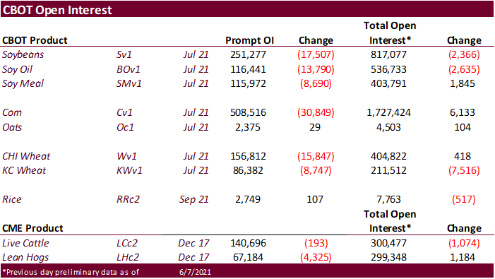 corn inspections were on the lower end of trade expectations. USDA US corn export inspections as of June 03, 2021 were 1,413,073 tons, within a range of trade expectations, below 2,104,363 tons previous week and compares to 1,220,985 tons year ago. Major