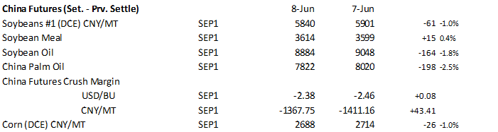 will see heavy rain affecting palm oil production this week. - China: