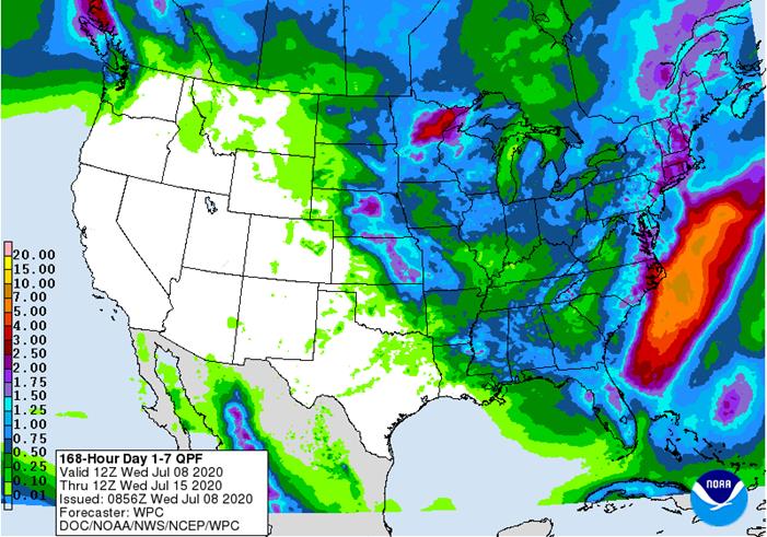 soybean production came in below expectations. The US will see localized rain bias Midwest this week before net drying occurs during the 6-10 period. The evening model runs did put rain in the second week of the outlook but compared to what region you look
