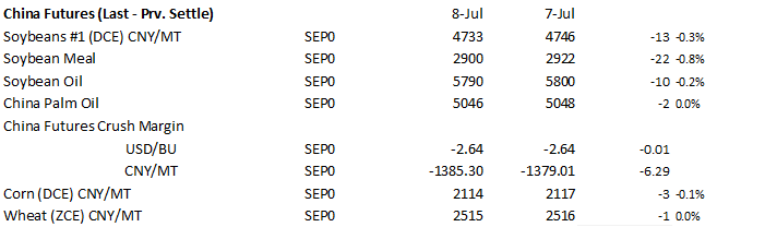 at for the WCB, it varies. Soybeans traded at a 4-day low below the psychological $9.00 level but remain near a 4-month high on US weather concerns. China’s Sinograin sold 65,520 tons of soybeans out of auction. We hear state owned Chinese crushers bought