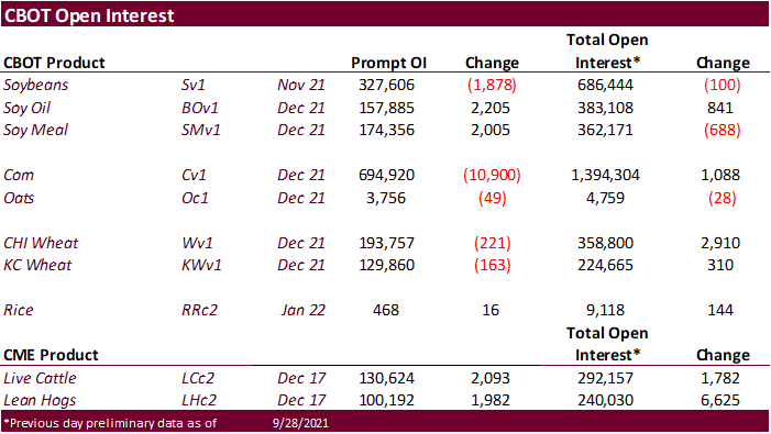 a lower trade in energies and higher USD (up about 20 points and highest level since November 2020), major CBOT agriculture markets are higher.