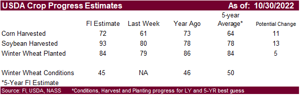 First Notice Day deliveries for November soybeans is seen in a 0-50 range.