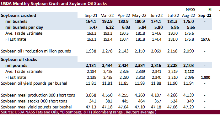 oil to the 69-70 cent area if NASS reports a higher than expected end of September ending soybean stocks on Tuesday. We see soybeans in a sideways trading range over the short term.