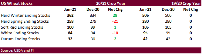 No change to US wheat (ALL) balance, but notable by class below