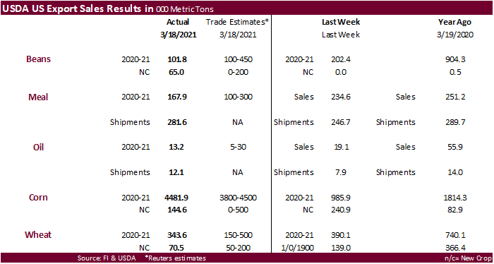 U.S. EXPORT SALES FOR WEEK ENDING 3/18/2021