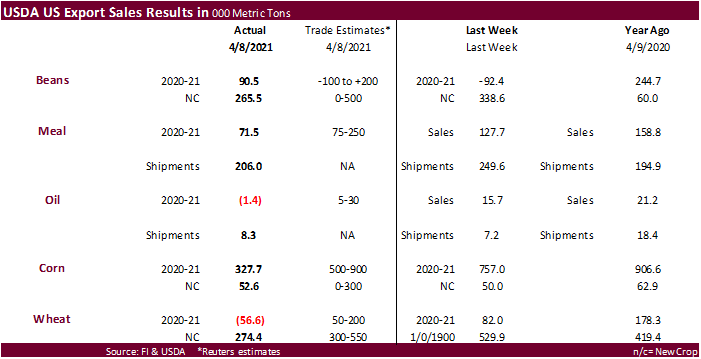 U.S. EXPORT SALES FOR WEEK ENDING 4/8/2021