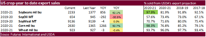 Soybean sales for old crop were above water at 90,500 tons and new-crop within expectations at 265,500 tons. Meal and soybean oil sales were at the low end and below expectations, respectively.