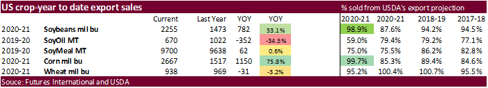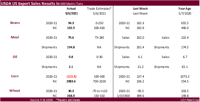 U.S. EXPORT SALES FOR WEEK ENDING 5/6/2021
