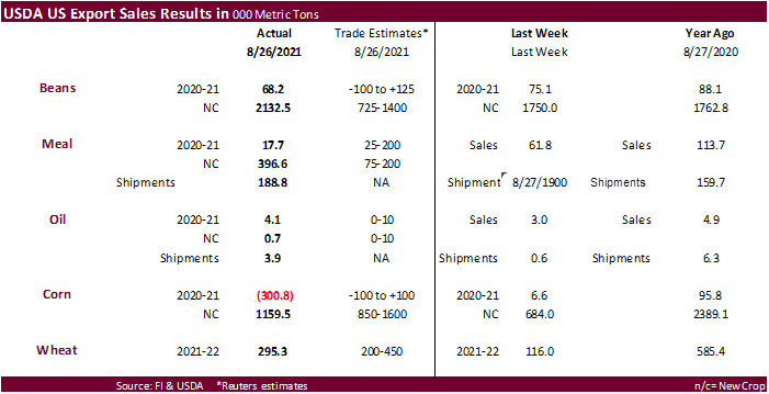 U.S. EXPORT SALES FOR WEEK ENDING 8/26/21