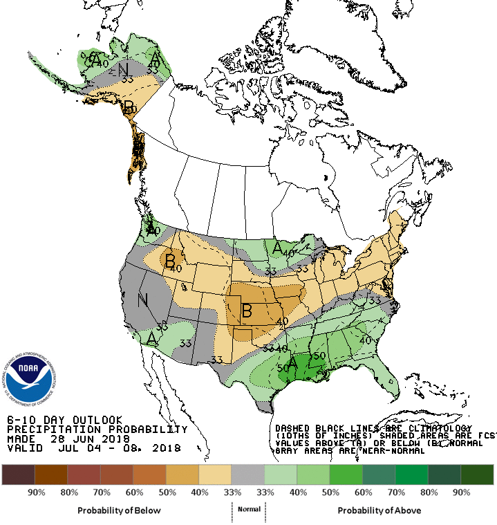 - The forecast calls for limited precipitation during the second week of July, but the northern and eastern Midwest may pick up on rain.