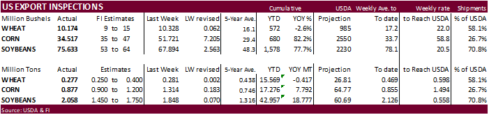 USDA inspections versus Reuters trade range