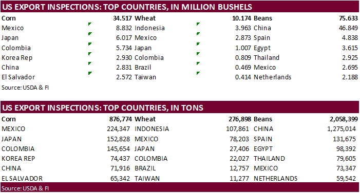 GRAINS INSPECTED AND/OR WEIGHED FOR EXPORT