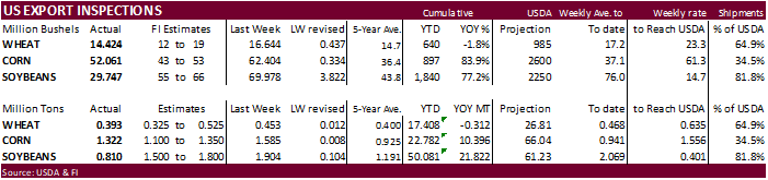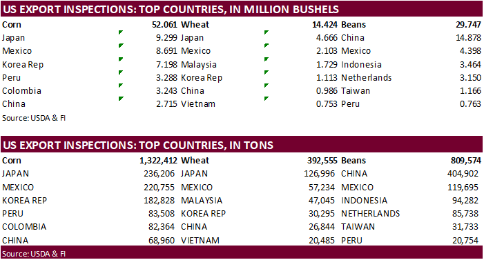 GRAINS INSPECTED AND/OR WEIGHED FOR EXPORT