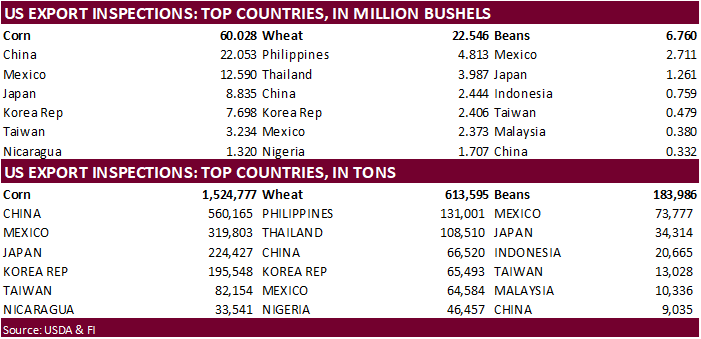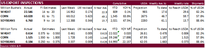 USDA inspections versus Reuters trade range