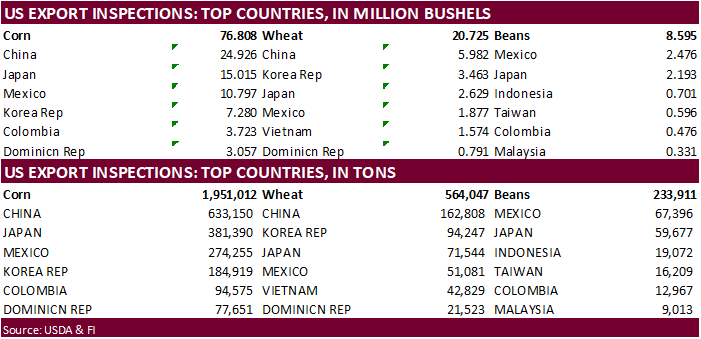 GRAINS INSPECTED AND/OR WEIGHED FOR EXPORT