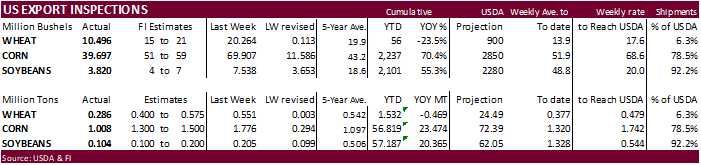 Although grain exports were reported below expectations, we see good corn shipments to China