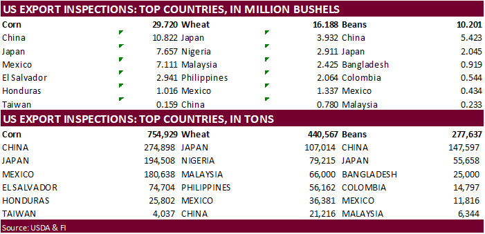 GRAINS INSPECTED AND/OR WEIGHED FOR EXPORT