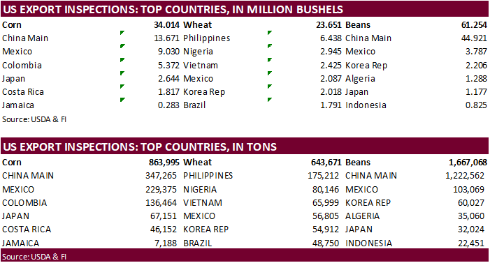 GRAINS INSPECTED AND/OR WEIGHED FOR EXPORT