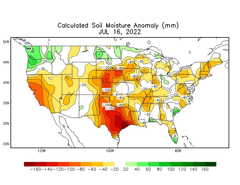 To put the current heat and dry conditions in perspective, much of the Southern Plains have experienced a top 15 driest AND hottest Jun 1 – Jul 16 period since 1893, leading to widespread drought and well-below average soil moisture values across the region.