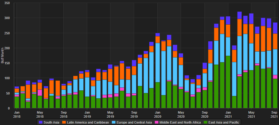- The US looks to be concerned with Russia’s potential influence over the European region by using its energy supplies to pressurize countries within the area. Europe has become a major destination for US LNG, and new flows from Russia could reduce US-to-Europe flows.