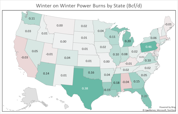 For the winter, L48 natural gas power burns were 2.88 Bcf/d higher than the previous year. Over the winter, that equated to 435 Bcf of more gas demand relative to the previous year. We see this as evidence of the system working, where prices helped keep the system balanced.