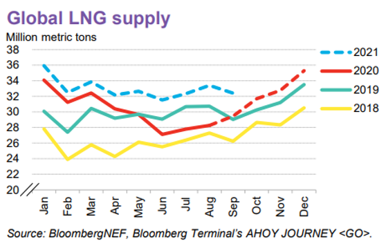 The ensure netbacks are positive, we have seen both Asian and European prices increase to keep the netbacks positive. The JKM price for Nov 2020 through Jan 2021 is currently trading at $5.52/MMBtu. This is equivalent to roughly 12% Brent indexed LNG prices – close to the long-term contracted LNG price slope index to Brent or JCC.